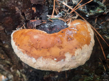 Red Belted Polypore is saprobic and parasitic fungi growing solitary or in groups on decaying wood or living trees. Recognized as a new species in 2019, it was segregated from Fomitopsis pinicola species complex. Fomitopsis means having the appearance of Fomes; mounceae honors Irene Mounce,(1894–1987), a Canadian mycologist. Red Belted Polypore has a long history of traditional uses. Like many polypores, is useful as a fire-starter and to keep coals alive when moving camp. When mixed with tobacco and smoked, it was said to help treat a headache. When dried and powder it was used to stop bleeding and help heal the wound. It is an anti-inflammatory, anti-viral, anti-bacterial, anti-tumor, and more.
